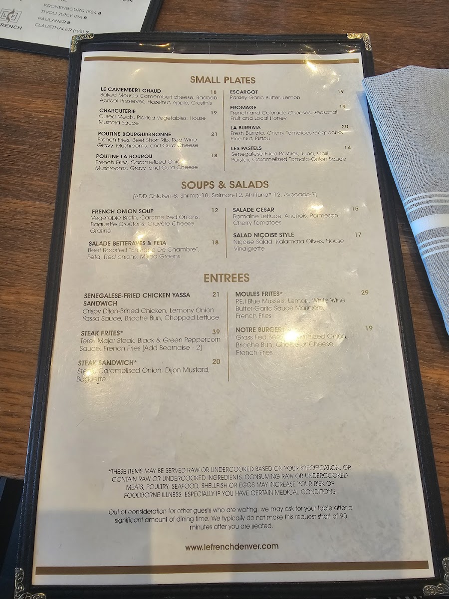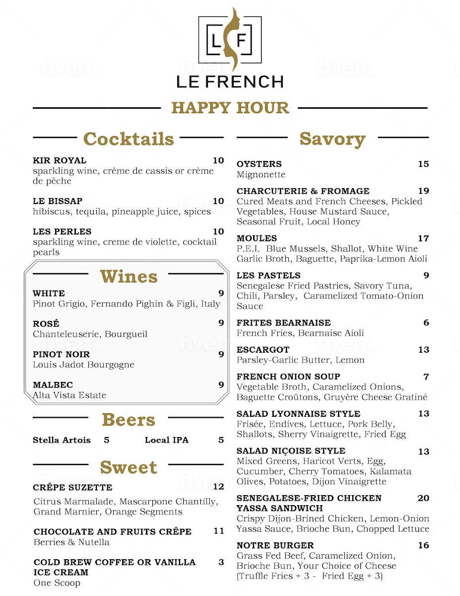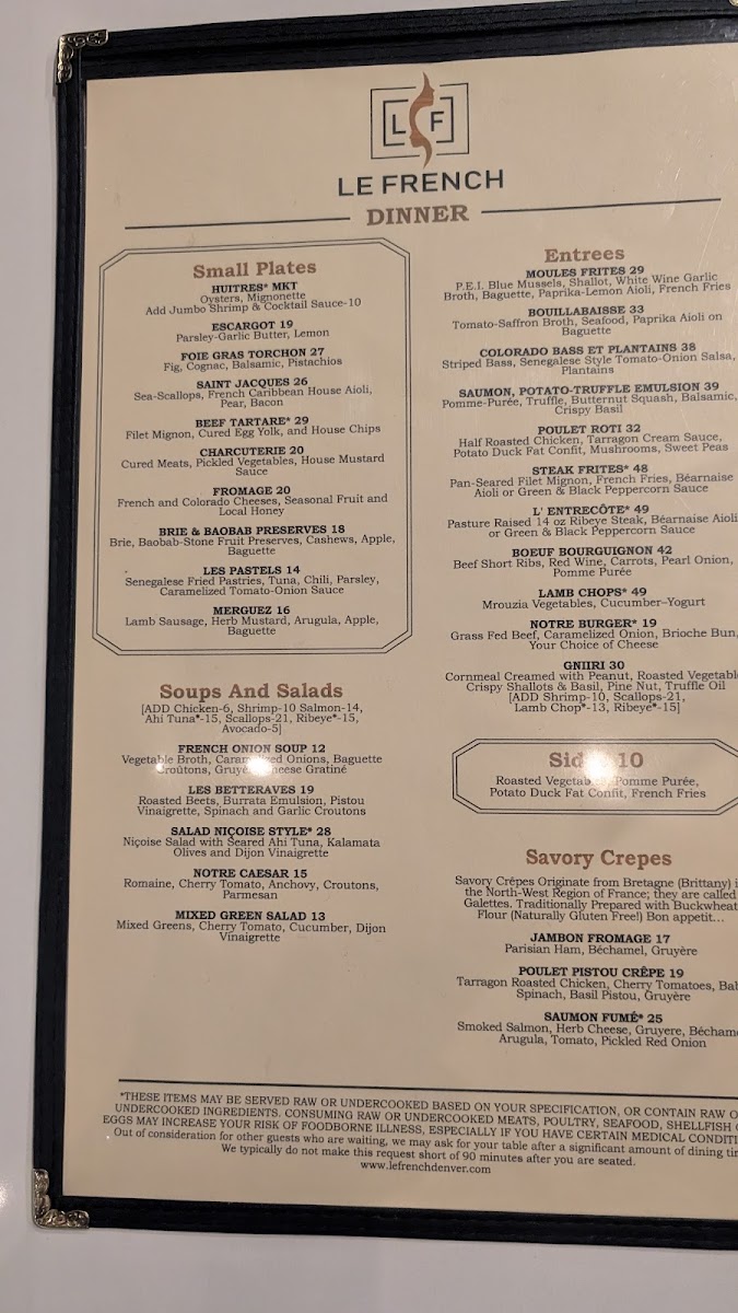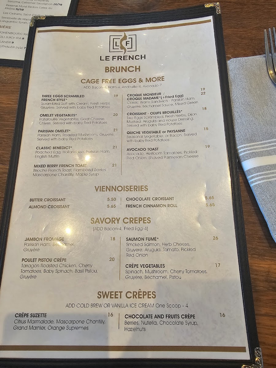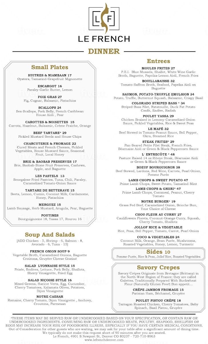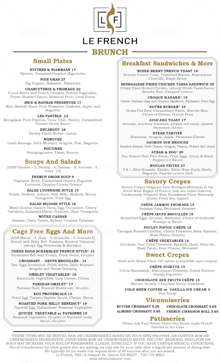 Nestled in the heart of Denver's vibrant Belleview Station, Le French Dtc Belleview Station Menu offers a delightful escape into authentic French flavors with a modern twist. Here, every dish is crafted to deliver a truly French dining experience, whether you're indulging in freshly baked croissants, enjoying a savory quiche, or savoring a perfectly seared steak frites. The menu is a harmonious blend of classic French favorites and contemporary touches, ensuring each bite is bursting with flavor. From light pastries to hearty mains, the offerings cater to both casual meals and more sophisticated indulgences. Perfectly complemented by an inviting ambiance, this menu promises an unforgettable dining journey that brings a taste of France right to your table.